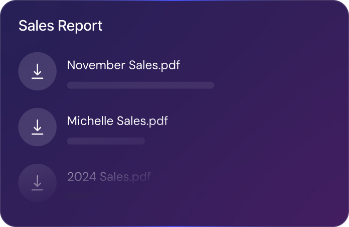 Easily download reports comprising of data from your sales reps or a custom date range.